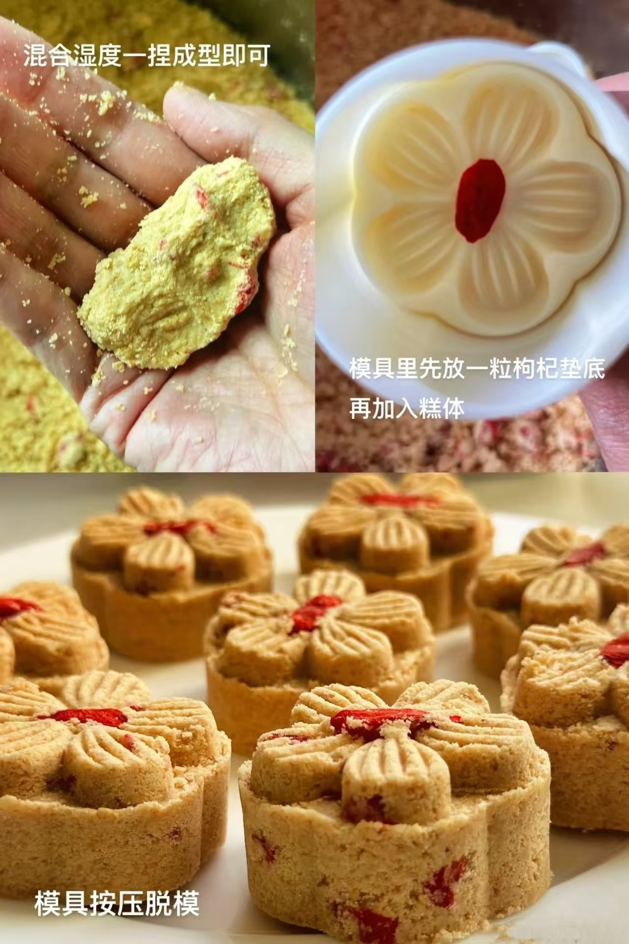 5.Press and unmold using a mold,and the Goji Berry Peanut Cake is ready!